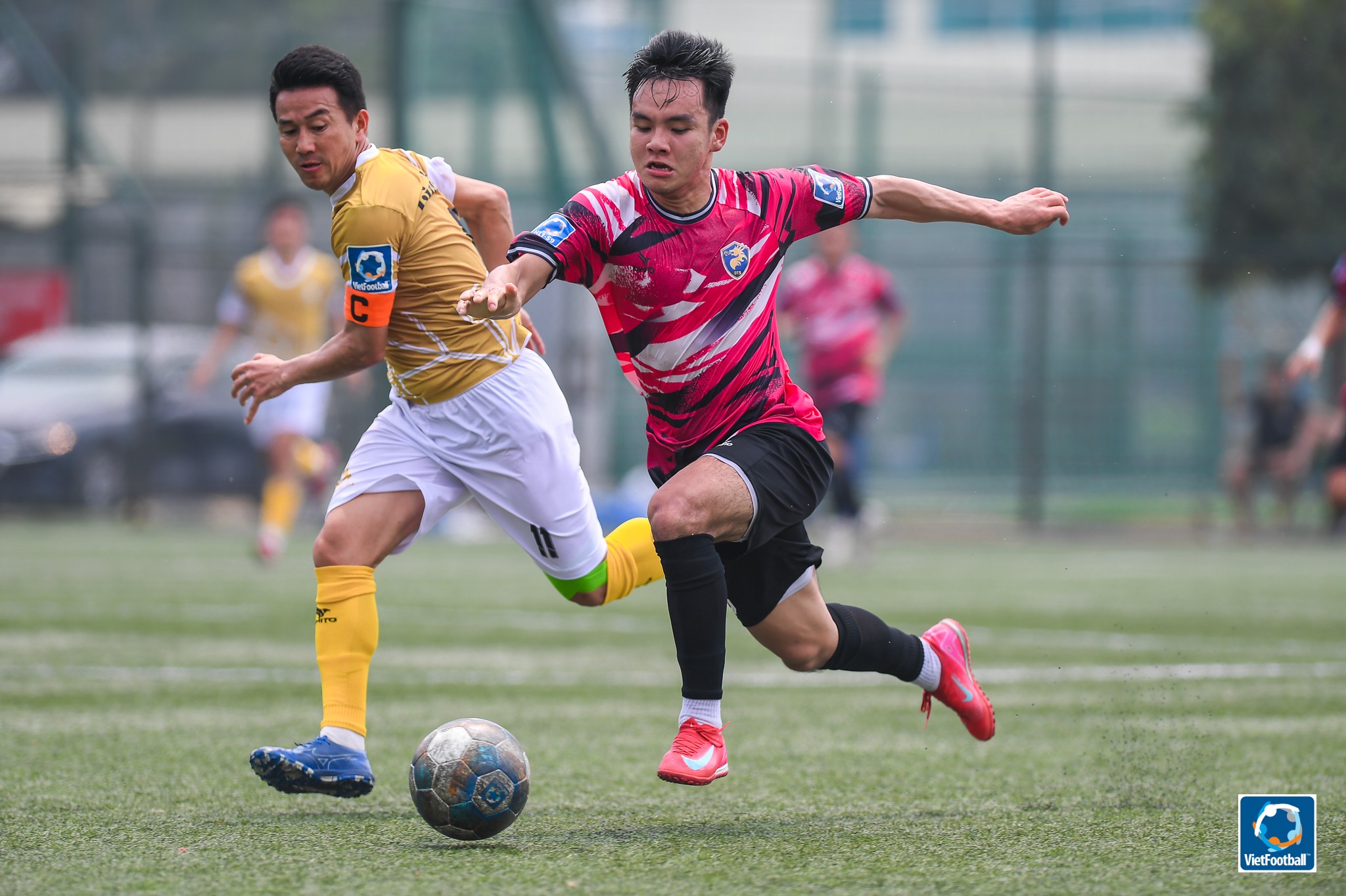 Đội trưởng Quang Tình dù bị chuột rút nhưng vẫn nỗ lực hết mình để mang về chiến thắng cho Vinataba. Ảnh: Vietfootball