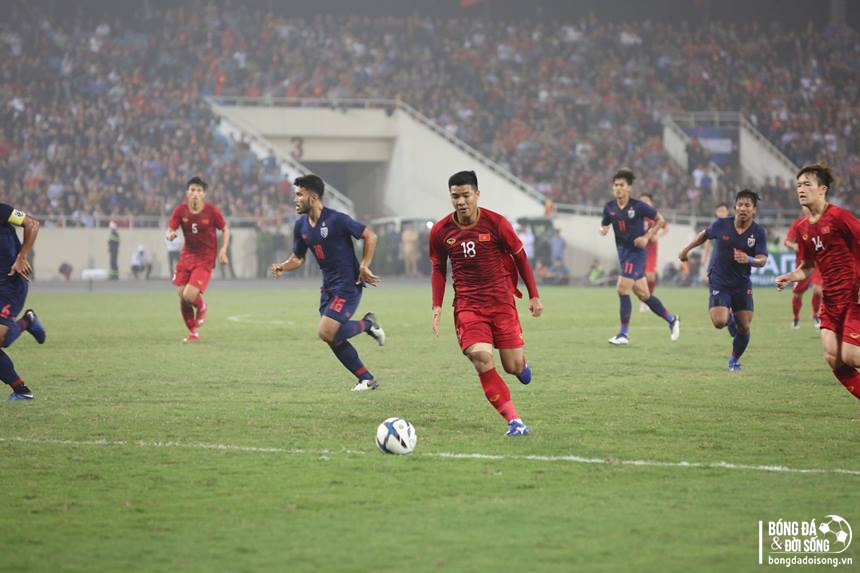 Trong thế trận giằng co, từ một pha chuyền bóng từ giữa sân của Văn Hậu, Đức Chinh đã có một pha xâu kim điệu nghệ, làm tung lưới Thái Lan. Bàn thắng khiến "chảo lửa" Mỹ Đình dậy sóng, mở ra một ngày thi đấu càn lướt trước đội bóng xứ Chùa Vàng.