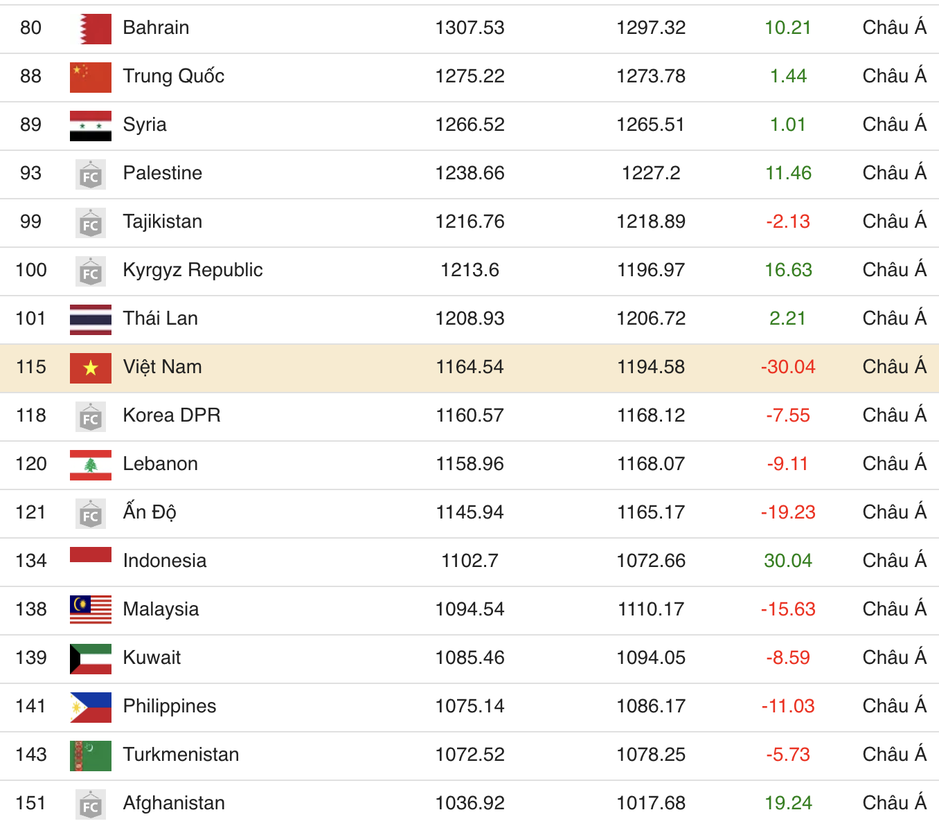 Hiện tại, Indonesia đang là đội tuyển có thứ hạng cao thứ 3 tại Đông Nam Á, xếp sau Thái Lan (hạng 101) và Việt Nam (hạng 115).