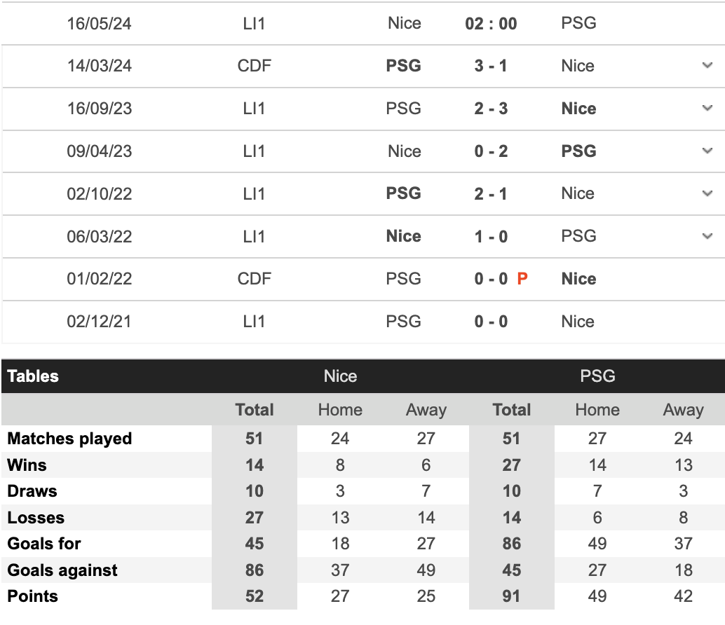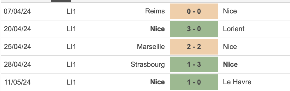 Nice đang có vị trí thứ 5 trên BXH, thậm chí họ vẫn còn nguyên cơ hội dự UEFA Champions League ở mùa giải tới nếu chơi tốt ở các trận đấu còn lại. Trong 5 trận gần nhất, Nice đang có thành tích bất bại với 3 thắng và 2 hoà.