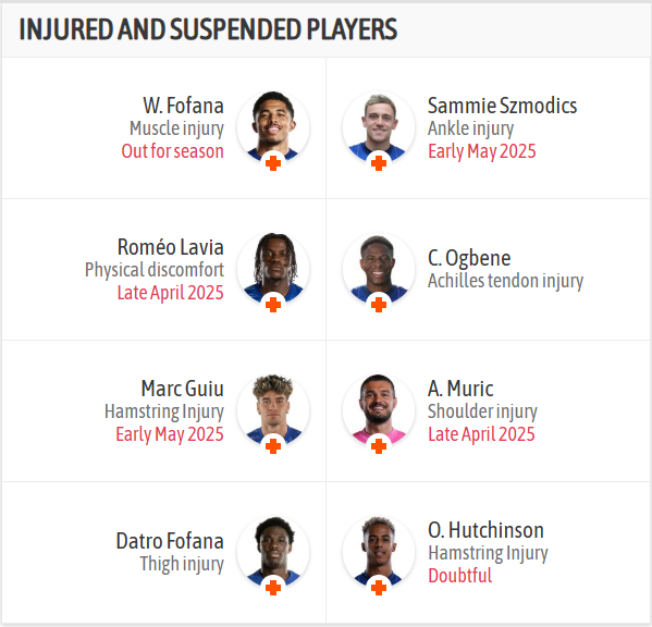 Chelsea đang có phong độ không được tốt tại Premier League. Trong 5 trận gần nhất tại giải đấu này, họ có được 3 chiến thắng nhưng xen kẽ vào đó là các trận hòa và thua. Chính sự chệch choạc nơi đội hình của The Blues đã khiến họ trở nên vất vả hơn trong cuộc đua giành 1 vé dự Champions League mùa sau. Hiện tại, đội chủ sân Stamford Bridge đang xếp thứ 4 với 53 điểm, ngang với Newcastle nhưng hơn về chỉ số phụ. Chính vì vậy, nhiệm vụ cho thầy trò HLV Enzo Maresca trong trận đấu tới là phải thắng để tiếp tục giữ vững top 4 khi mùa giải đã bước vào giai đoạn cuối.